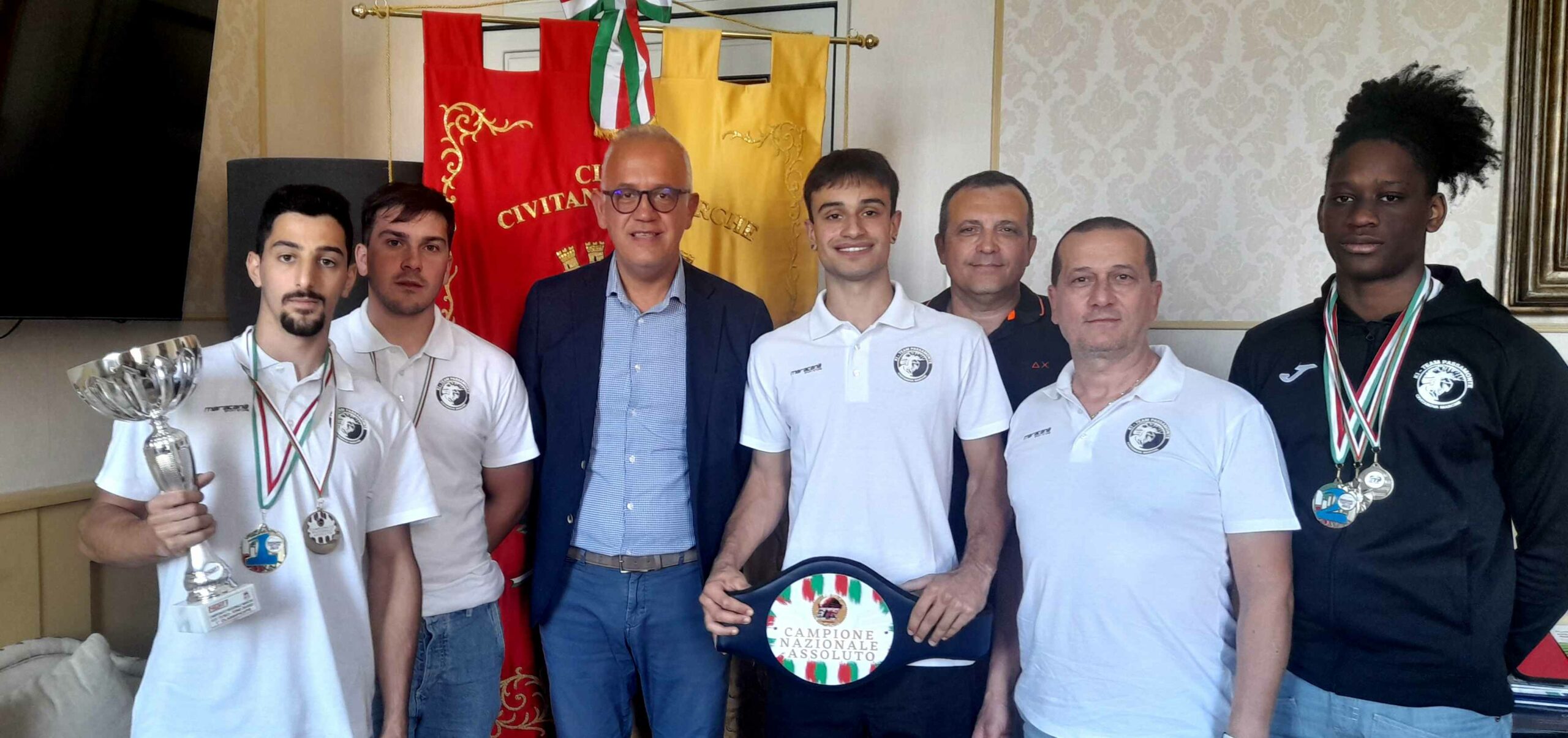 Ieri, il sindaco Fabrizio Ciarapica ha ricevuto tutto il team “Passamonte” a Palazzo Sforza: “Le mie più vive congratulazioni agli atleti, al team e al maestro Italo Passamonti per il prestigioso traguardo – ha detto Ciarapica – Sono certo che il risultato portato a casa rappresenti solo l’anticamera di successi assai più grandi e meritatissimi. Questi ragazzi, il loro spirito di sacrificio, entusiasmo, determinazione e costanza, insieme al Maestro Passamonti che da sempre crede nello sport e nei valori che trasmette, fanno onore allo sport e alla città di Civitanova. Una vittoria – ha aggiunto – che si unisce a tanti altri grandi successi che vedono, anche in altre discipline sportive, la nostra città protagonista. Complimenti a tutti, Civitanova è orgogliosa di voi”.