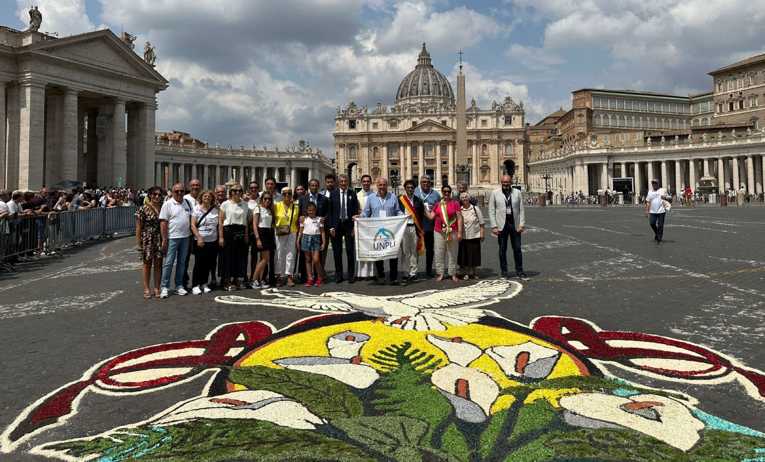 CASTELRAIMONDO – Un quadro fiorito in piazza San Pietro targato Infiorata Corpus Domini di Castelraimondo. Nel cuore del Vaticano una delegazione di infioratori proveniente da Castelraimondo ha realizzato un bellissimo quadro fiorito donato in onore di San Pietro e San Paolo a Roma in occasione della festa patronale della capitale. Un lavoro durato molte ore che ha visto gli infioratori castelraimondesi impegnati fino alle 3 di notte. «L’amministrazione comunale di Castelraimondo esprime grande gioia per aver partecipato a un importante evento per la città di Roma e conferma il sostegno verso tradizioni come questa – spiegano gli amministratori -. Un ringraziamento speciale alla Pro Loco di Roma che ci ha invitato a partecipare e ai nostri straordinari infioratori: Giovanna, Elisa, Mariso, Selene, Donatella, Elisabetta, Nadia, Domenico, Ilenia, Lao e Renzo».