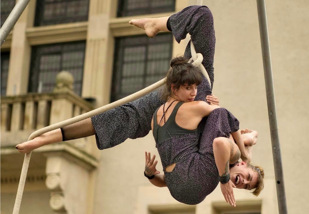 “Resta” si distingue per l’assenza di limiti spaziali e per il continuo movimento degli interpreti. La corda diventa un mezzo di esplorazione e scoperta di mondi invisibili, suscitando attenzione, nevrosi e meraviglia. Chiara Gorrieri e Giulia Scudeletti hanno dedicato le loro vite alle discipline aeree e hanno portato il loro spettacolo in numerosi festival d’arte di strada in Italia e all’estero.