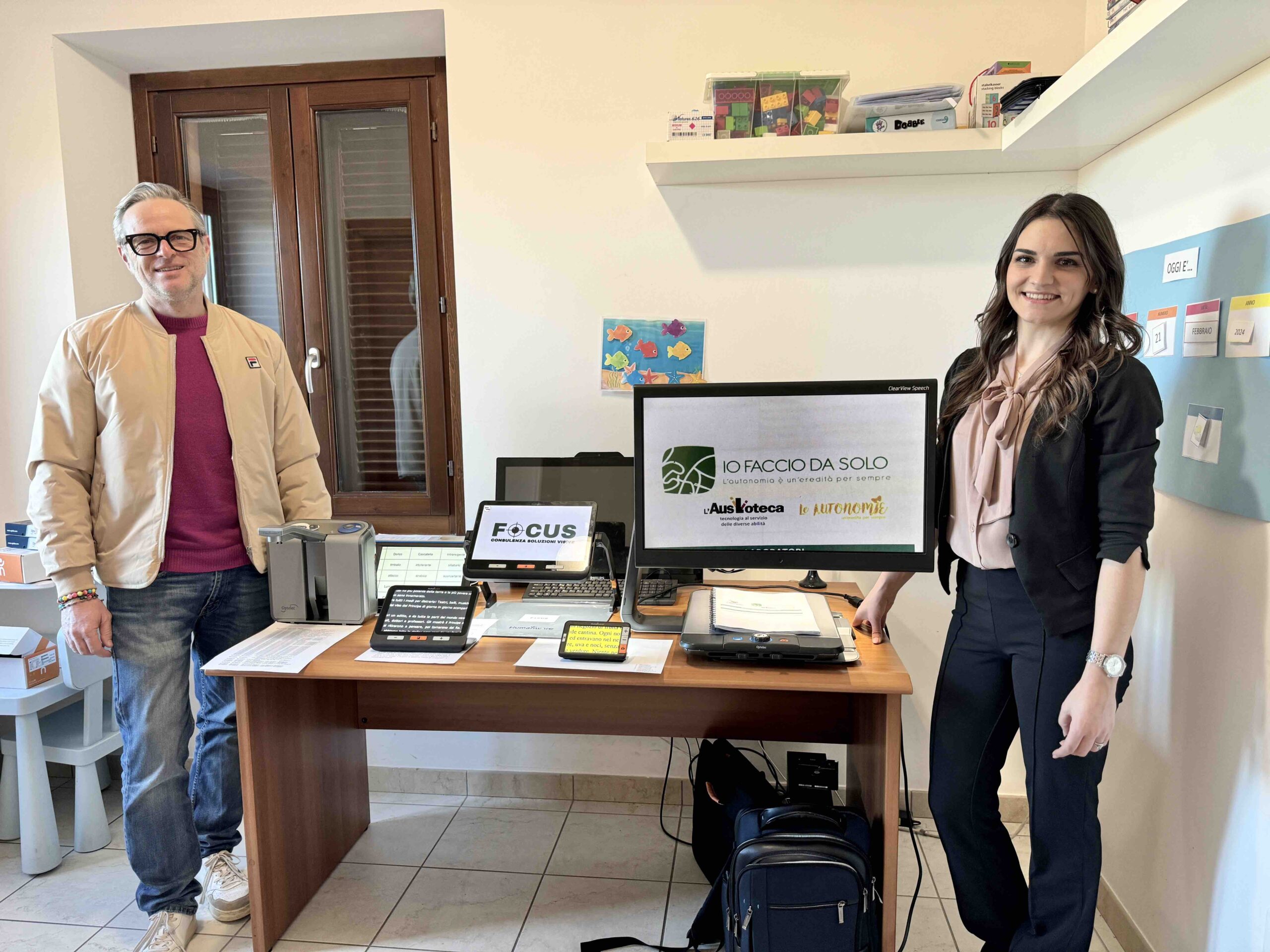 Il nuovo servizio dedicato alle persone ipovedenti e non vedenti offerto dai laboratori Io faccio da solo” di Montecosaro è frutto di una collaborazione con la Focus-Soluzioni Visive di Ascoli Piceno. La tecnico Samantha Orfei si occupa di individuare le migliori soluzioni in termini di ausili visivi per risolvere le problematiche quotidiane di chi ha difficoltà visive, come videoingranditori, lettori vocali e software di sostegno.
