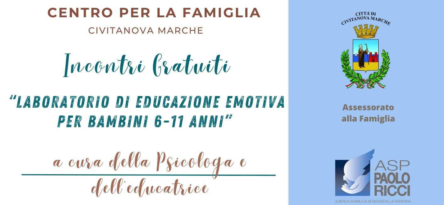Il Centro per la Famiglia della Città di Civitanova Marche, organizza un laboratorio di educazione emotiva per bambini (dai 6 ai 11 anni), che si svolgerà in sei incontri condotti da professionisti del settore.