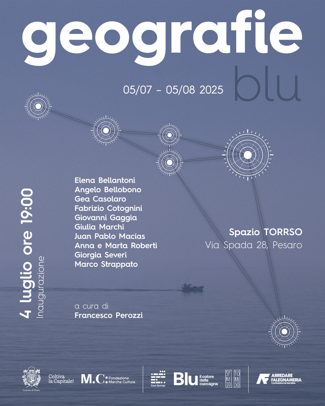 L’evento si inaugura venerdì 4 luglio alle ore 19 allo Spazio TORRSO, situato in via Spada a Pesaro, e rappresenta la conclusione del progetto ‘Blu: il colore della cuccagna’ di Casa Sponge. La mostra, curata da Francesco Perozzi, si inserisce nel contesto di Pesaro 2024, Capitale Italiana della Cultura, e mira a valorizzarne l’eredità culturale attraverso un percorso di residenze artistiche, mostre, performance e laboratori. All’inaugurazione partecipano undici artisti che portano in mostra lavori nati o rielaborati durante il progetto, tutti caratterizzati dal colore blu, simbolo di memoria, paesaggio e immaginazione.