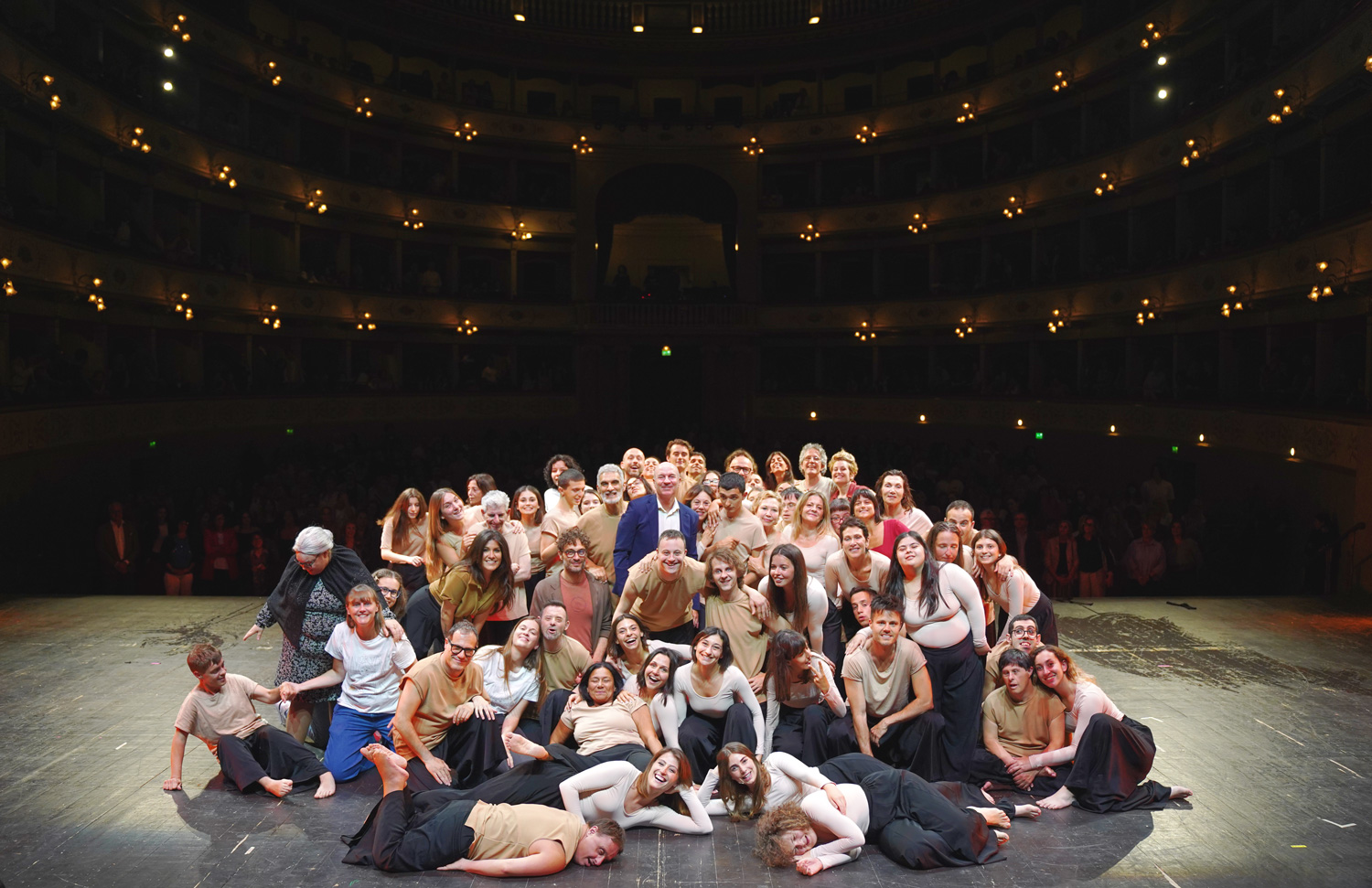 Sul palco del Feronia sale la Compagnia Mayor Von Frinzius di Livorno, realtà nazionale in tournée con Paolo Ruffini e vincitrice del premio Giovanni Soldini nel 2023, con la nuova produzione “Sfiorarsitoccarsi è complicato“. Lo spettacolo offre un intreccio tra amori platonici, confessioni intime, sketch comici, dialoghi filosofici e riferimenti poetici, alternando momenti di leggerezza e riflessione e affrontando temi come la découverte della mascolinità, le dinamiche familiari e interviste satiriche sui limiti e le potenzialità dell’inclusione. Il filo conduttore è lo “sfiorarsi”: la possibilità di incontrarsi senza annullarsi, riconoscendo la diversità come opportunità di crescita reciproca. Sul palcoscenico partecipano circa 40 attori, tra cui talenti con disabilità, guidati da una regia corale che vede Lamberto Giannini, Rachele Casali, Silvia Angiolini, Allegra Sartoni e Sofia Puccini. Lo spettacolo, definito tra i più significativi a livello nazionale per la sua natura di teatro integrato, scuote le emozioni e invita alla riflessione collettiva.